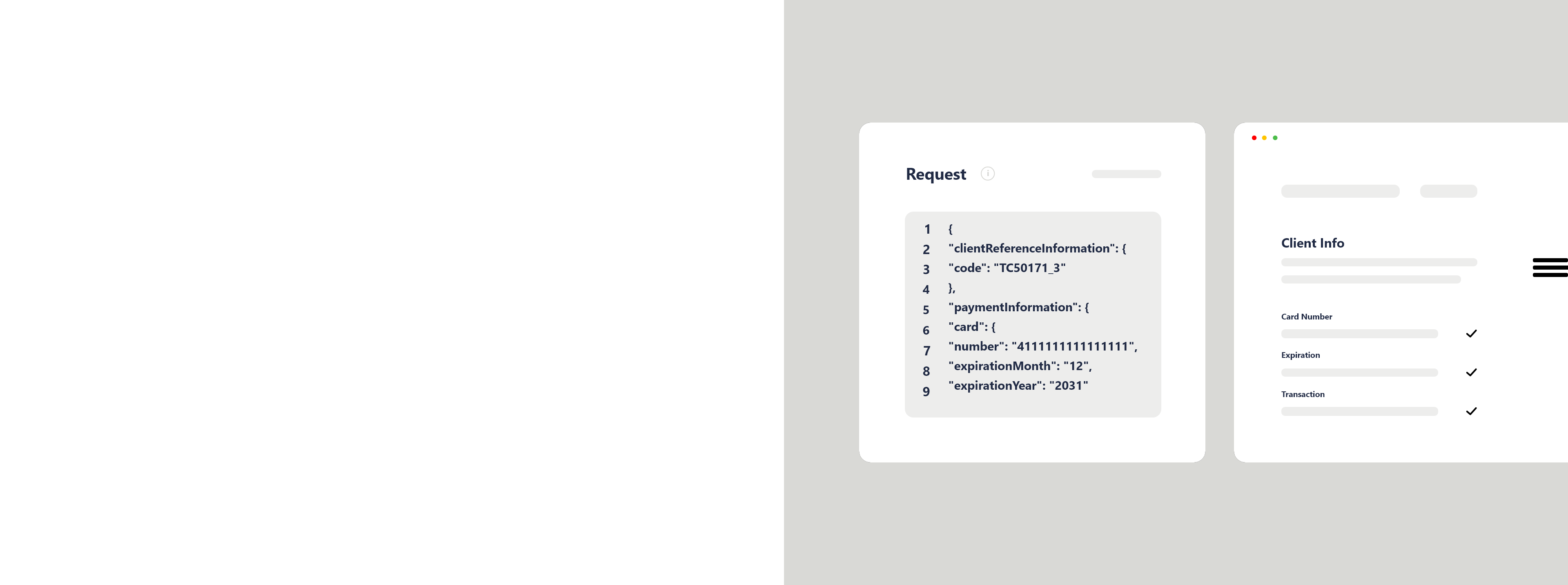 View sample code and API field descriptions. Send requests to the sandbox and see the responses.
