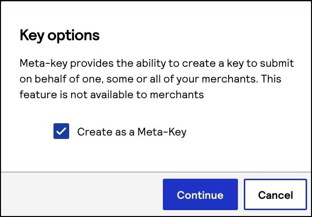 The Key options page appears. - Check theCreate as a Meta-Keybox and clickContinue.