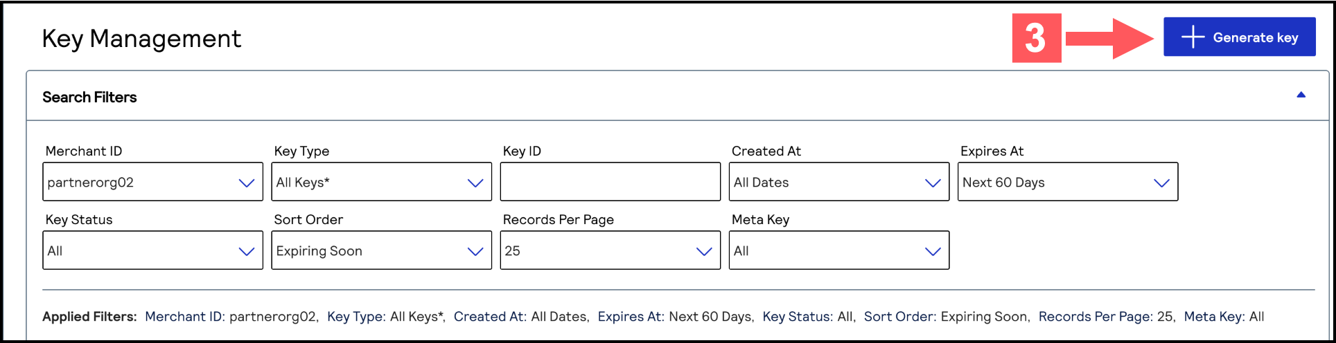 - On the left navigation panel, choosePayment Configuration > Key Management.
